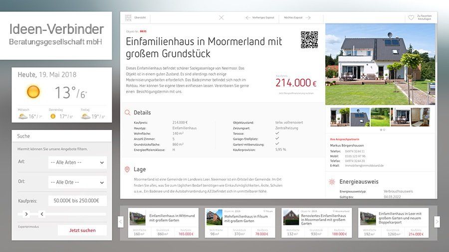 Das Produktboard konzentriert sich auf ein einzelnes Produkt / eine einzelne Produktgruppe (hier am Beispiel Immobilien dargestellt).